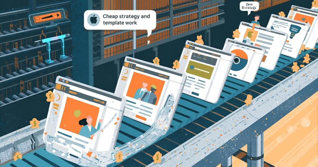 • 戦略が一切含まれていない: 貴社のビジネス課題やKPI(目標)を考慮せず、ただデザインテンプレートに当てはめるだけの「制作作業費」しか含まれていません。これでは「最強の営業マン」ではなく、「キレイなだけの飾り物」しか作れません。