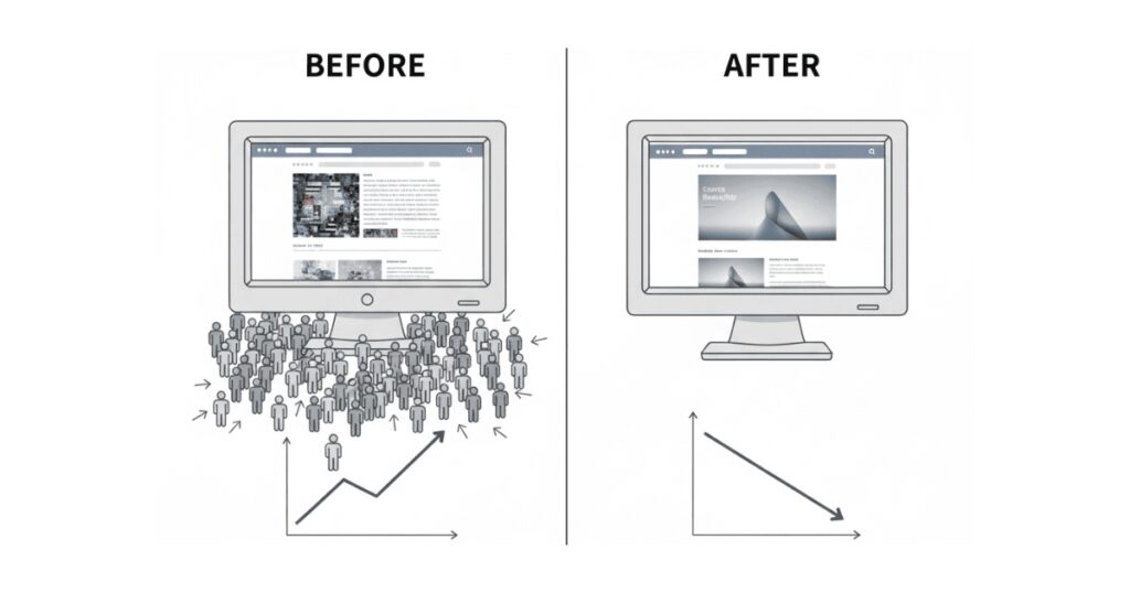 これは、Webサイトリニューアルにおける最悪の失敗シナリオです。 「古いサイト(負債)」を解消しようとしたのに、唯一の「資産」であったはずの「集客力(SEO評価)」まで失ってしまっては、本末転倒です。